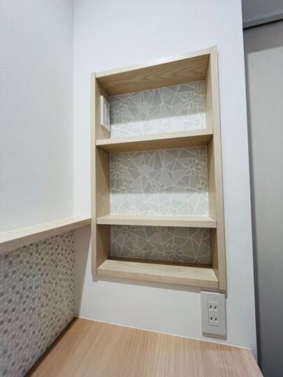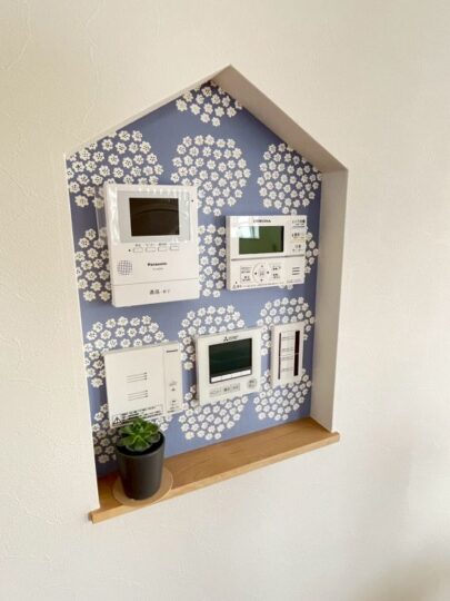 今回ご紹介するお家では、リモコンニッチの中に北欧柄のクロスを取り入れました。