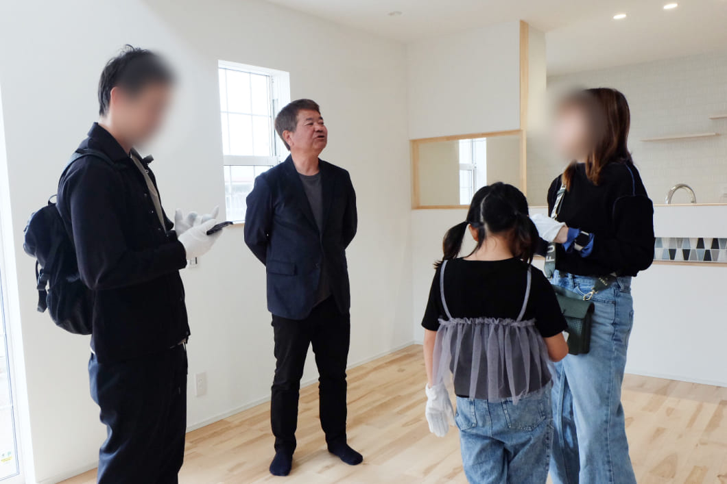「ちょうど完成見学会があるのですが、いかがですか?」とお誘いさせていただくと、「行きます!」とお返事くださったM様。